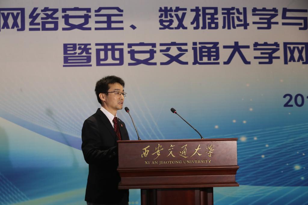 10月25日下午,网络安全、数据科学与人工智能的融合发展前沿论坛暨西安交通大学网络空间安全学院成立大会在主楼多功能报告厅举行。中国工程院院士沈昌祥,中国工程院院士吴建平,中国科学院院士管晓宏,西安交大党委常务副书记王小力、副校长郑庆华,北京信息科学技术研究院院长冯登国,上海交通大学网络空间安全学院院长李建华,西安电子科技大学网络空间安全学部主任马建峰等出席大会,来自全国各兄弟院校网安相关领域的专家学者和领导以及学校相关职能部处、学院的领导等参加大会。大会由西安交大电信学院党委书记梁莉主持。
