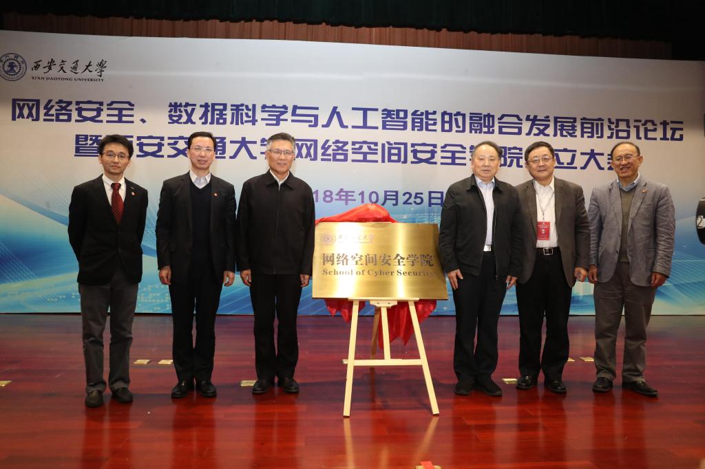 沈昌祥院士、吴建平院士、管晓宏院士、王小力常务副书记、郑庆华副校长及苏洲院长共同为学院揭牌。