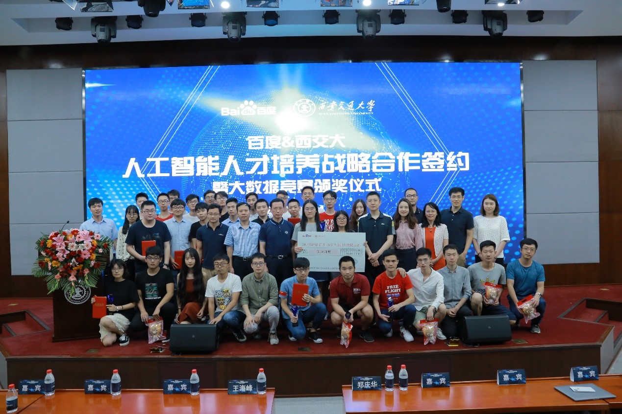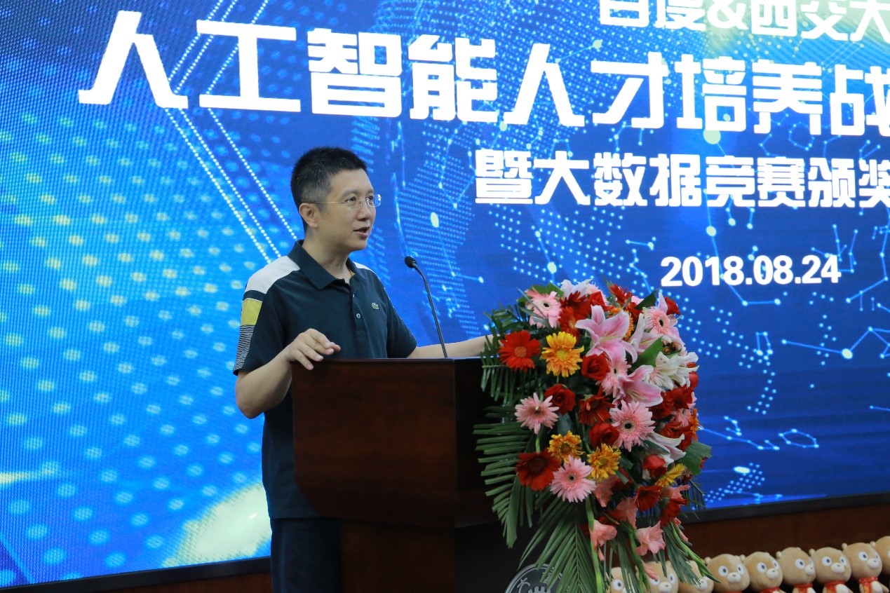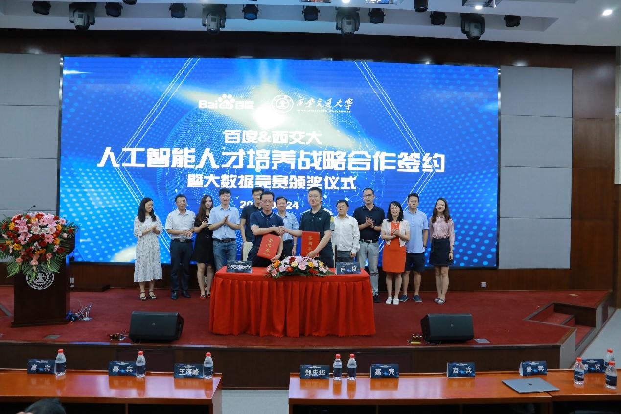 8月24日晚,百度-西安交通大学人工智能人才培养战略合作签约仪式在西安交大举行。西安交大副校长郑庆华与百度公司高级副总裁、AI技术平台体系(AIG)总负责人王海峰出席签约仪式,并共同为第四届百度大数据竞赛获胜者颁奖。